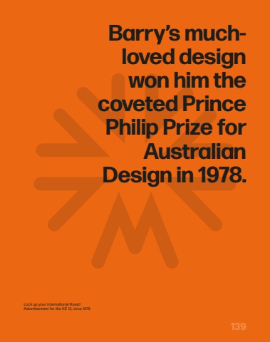 Lock up your International Roast! Advertisement for the KE 12, circa 1978Barry%u2019s muchloved design won him the coveted Prince Philip Prize for Australian Design in 1978.139