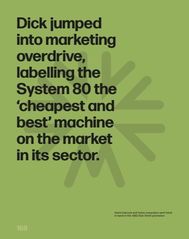 168Dick jumped into marketing overdrive, labelling the System 80 the %u2018cheapest and best%u2019 machine on the market in its sector.Home haircuts and home computers went hand in hand in this 1982%u00a0Dick Smith promotion