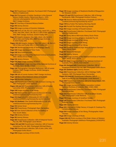 Page 112 Powerhouse Collection. Purchased 2007. Photograph Marinco Kojdanovski.Page 114 Photograph of Holden Sandman in the General Motors Holden studio, Fishermans Bend, c. 1974, unknown%u00a0photographer. Gift of Chris Emmerson, RMIT%u00a0Design Archives.Page 117 Courtesy of General Motors/HoldenPage 118 Jeremy SimonsPage 119 Image courtesy of Dominic Hofstede.Page 120 Print of %u2018Life. Be in it.%u2019 comic strip, week 223, c. 1970s, artist, Alex Stitt, client, Life. Be in it. Gift of Alex and Paddy Stitt, RMIT Design Archives. %u00a92024 Paddy Stitt.Page 121 Graphic designer, Alex Stitt, client, Life. Be in it. Gift%u00a0of Alex and Paddy Stitt, RMIT Design Archives. %u00a9 2024 Paddy Stitt.Pages 122-123 Graphic designer Alex Stitt, client Life. Be in it. Gift of Alex and Paddy Stitt. %u00a9 2024 Paddy Stitt.Page 124 Swinburne University of Technology LibraryPage 126 Image courtesy of Triton Tools.Page 128 Nine EntertainmentPage 131 Image courtesy of the National Archives of Australia. NAA: A6135, K21/2/79/46Page 132 Jeremy SimonsPage 135 (top) Image courtesy of D%u00e9cor.Page 135 (bottom) Image courtesy of the National Archives of Australia. NAA: B4498, 177G10Page 136 Photographer, Georgina Matherson. Gift of Leonie Hudson, RMIT Design Archives. %u00a92024 Georgina Matherson.Page 138 Gift of Leonie Hudson. RMIT Design Archives.Page 140 Barry Olive/National Library of AustraliaPage 143 Brendan GallagherPage 144 Powerhouse Collection. Gift of Crown Corning Ltd, 1987. Photograph Linda Warlond.Pages 146 and 147 Powerhouse Collection. Gift of Denise Larcombe 2012. Photographer unknown.Page 148 Image courtesy of Ian Wong.Page 150 National Film and Sound Archive (CC BY 4.0), creativecommons.org/licenses/by/4.0/Page 153 (top) Joho345/Wikimedia (CC BY-SA 3.0), creativecommons.org/licenses/by-sa/3.0/deed.enPage 153 (bottom) Clive Smith/Wikimedia (CC BY 4.0), creativecommons.org/licenses/by/4.0/Page 154 James GreerPage 155 Powerhouse. Photograph Ryan Hernandez.Page 157 Ken Done/Collection of the Art Gallery of New%u00a0South Wales.Page 158 Jeremy SimonsPage 161 Jeremy SimonsPage 162 Powerhouse Collection. Gift of Holeproof Socks Pty%u00a0Ltd, 1991. Photograph Laura Moore.Pages 164 and 165 Powerhouse Collection. Gift of Caroma Industries Pty Ltd, 1992. Photograph Michael Myers.Page 166 Powerhouse Collection. Gift of John Little, 2012. Photograph Sotha Bourn.Page 169 Image courtesy of Dick Smith.Page 170 Image courtesy of Stephanie Bradford/Shepparton Art Museum (SAM)Pages 172 and 175 Powerhouse Collection. Gift of Energy Surfboards, 1988. Photograph Andrew Frolows.Page 176 Source: National Museum of Australia (CC BY-SA), creativecommons.org/licenses/by-sa/2.0Page 179Tony Feder/The Sydney Morning HeraldPage 180 Purcell/The Sydney Morning HeraldPage 183 Image courtesy of Russell Jackson.Page 184 Powerhouse Collection. Purchased 2007. Photograph Marinco Kojdanovski.Page 187 Trinity Mirror/Mirrorpix/Alamy Stock PhotoPage 188 Image courtesy of Sabco Australia Pty Ltd.Page 190 Image courtesy of Ian Wong.Page 191 Image courtesy of Ian Wong.Page 192 Image courtesy of Ian Wong.Page 194 Jonathan Eastland/Ajax News & Feature Service/ Alamy Stock PhotoPage 197 News Ltd/NewspixPage 198 Jeremy SimonsPage 200 Image courtesy of the National Archives of Australia. NAA: A6135, K23/1/87/14Page 201 (top) Image courtesy of the National Archives of Australia. NAA: A6135, K18/4/90/65Page 201 (bottom left) Powerhouse Collection. Gift of Rosebank Products Pty Ltd, 1987. Photograph Sotha Bourn.Page 201 (bottom right) Jeremy SimonsPage 202 Powerhouse Collection. Gift of Aldridge Tra%u008b ic Systems, 1987. Photograph Ryan Hernandez.Pages 204 and 207 Powerhouse Collection. Gift of Safe N Sound Pty Ltd. Photograph Linda Warlond.Page 208 Powerhouse Collection. Gift of Dr Darryl Mead, 1991. Photograph Enzo Amato.Page 211 Image courtesy of Telstra Corporation Limited, National Archives of Australia. NAA: J2364, 9980Page 212 Powerhouse Collection. Purchased 1986. Photograph Geordie McRae.Page 214 Powerhouse Collection. Gift of Jonathan Sceats, 1987. Photograph Linda Warlond.Page 216 Image courtesy of Jonathan Sceats.Page 218 Powerhouse Collection. Purchased 1991. Photograph Anthony Potter.Page 220 Jeremy SimonsPage 223 Courtesy of Phillip Tanner, A Couple %u2018A Cowboys Pty Ltd/atmosfear.com.au.Page 224 Image courtesy of Ian Wong. Photographer Adam Thomas.Page 226 Image courtesy of Rode.Pages 228%u201329 Photo courtesy of the State Library of Western Australia. Photograph Galeforce Photography (223032PD).Page 233 Jeremy Simons231